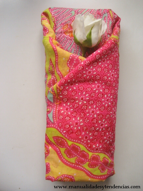 En el blog de manualidades y tendencias nos enseñan a envolver este regalo con un videotutorial en este enlace: Cómo envolver un regalo con tela y la verdad es que los regalos hechos así para mi quedan más personales.
