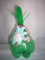 Este dulcero es precioso y está hecho con botellas pequeñas de plástico y flores artificiales. Es muy bonito!